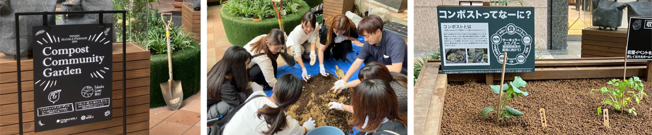As part of Hakata Daimaru's "Compost Project," which began in 2022, we created a compost garden in front of the store (Pas-sage Square) in October 2024. The compost garden features baby greens, celery, stick broccoli, carrots, and other vegetables. In April 2025, we also held Spring Harvest Festival, where participants enjoyed sandwiches made with vegetables harvested from the garden. The soil in the planters is made from composted food waste collected from the employee cafeteria at Hakata Daimaru, contributing to efforts to reduce food waste.