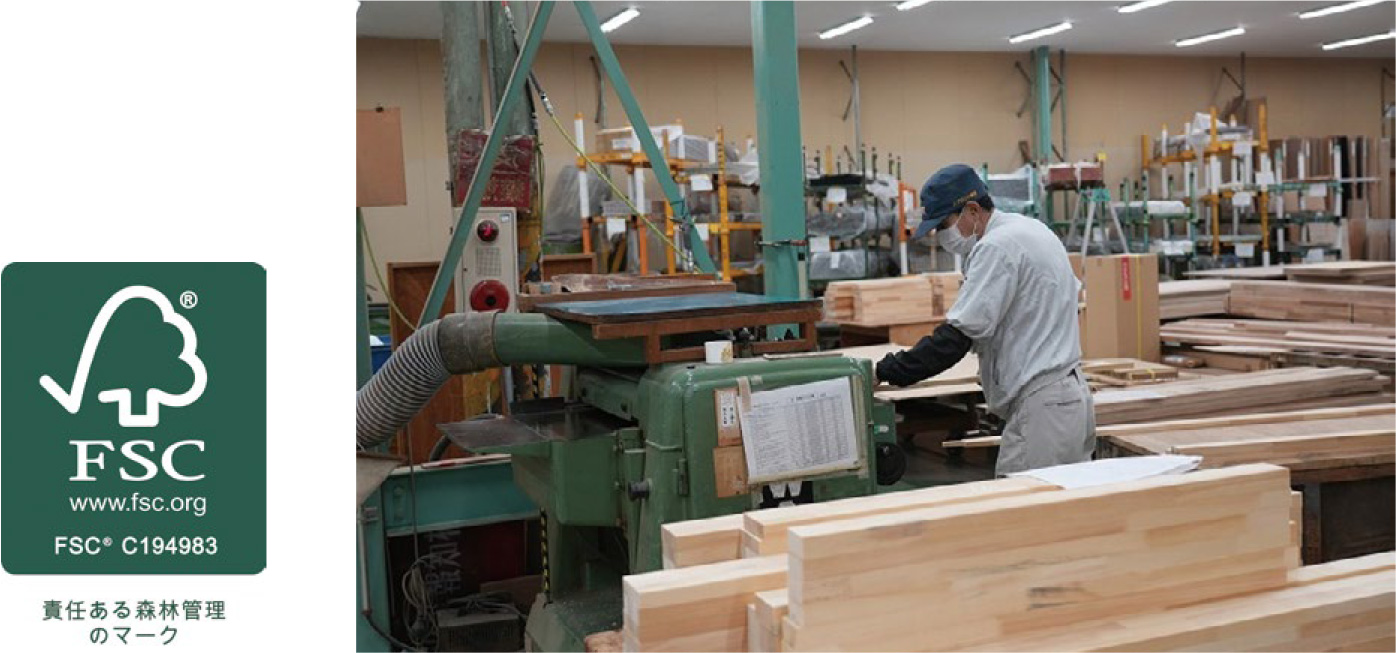J. FRONT Design & Construction specializes in manufacturing custom furniture and store fixtures to meet the needs of its customers, mainly hotels, commercial facilities, and offices.In October 2023, the company acquired FSC®-Chain of Custody (CoC) certification*, which serves as proof that it properly manages and processes products made of wood from forests certified under Forest Management (FM certification) standards or other low-risk wood. This certification applies to their Osaka factory and their sales department, which acts as the customer interface for their products.