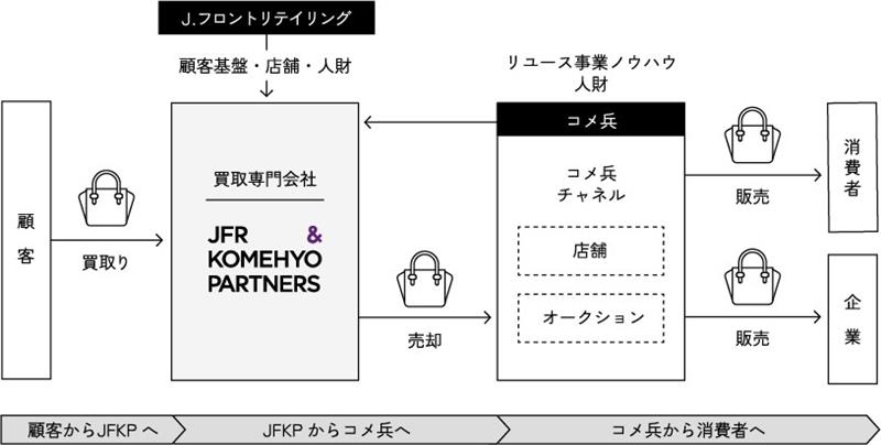 株式会社JFR & KOMEHYO PARTNERSは、「人生のステージとモノの価値をつなぎ、笑顔社会を実現するサーキュラーステーション(循環経済の拠点)へ。」をビジョンとし、持続可能な社会の実現を目指して設立した合弁会社です。本事業は、コロナ禍をきっかけに死生観を見つめ直す人々が増え、所有物を整理しようという終活意識が高まる中、百貨店のお客様にもリユースのニーズがあることに気づいたことがきっかけで誕生しました。