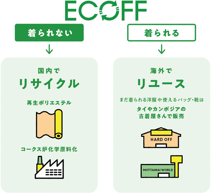 2024年度には環境省が選定する環境配慮行動普及促進事業費補助金及び二酸化炭素排出抑制対策事業費等補助金(「デコ活」(脱炭素につながる新しい豊かな暮らしを創る国民運動)推進事業)に採択され衣類循環アップサイクルプロジェクト「roop」を実施し、2025年度もプロジェクトを継続して実施いたします。